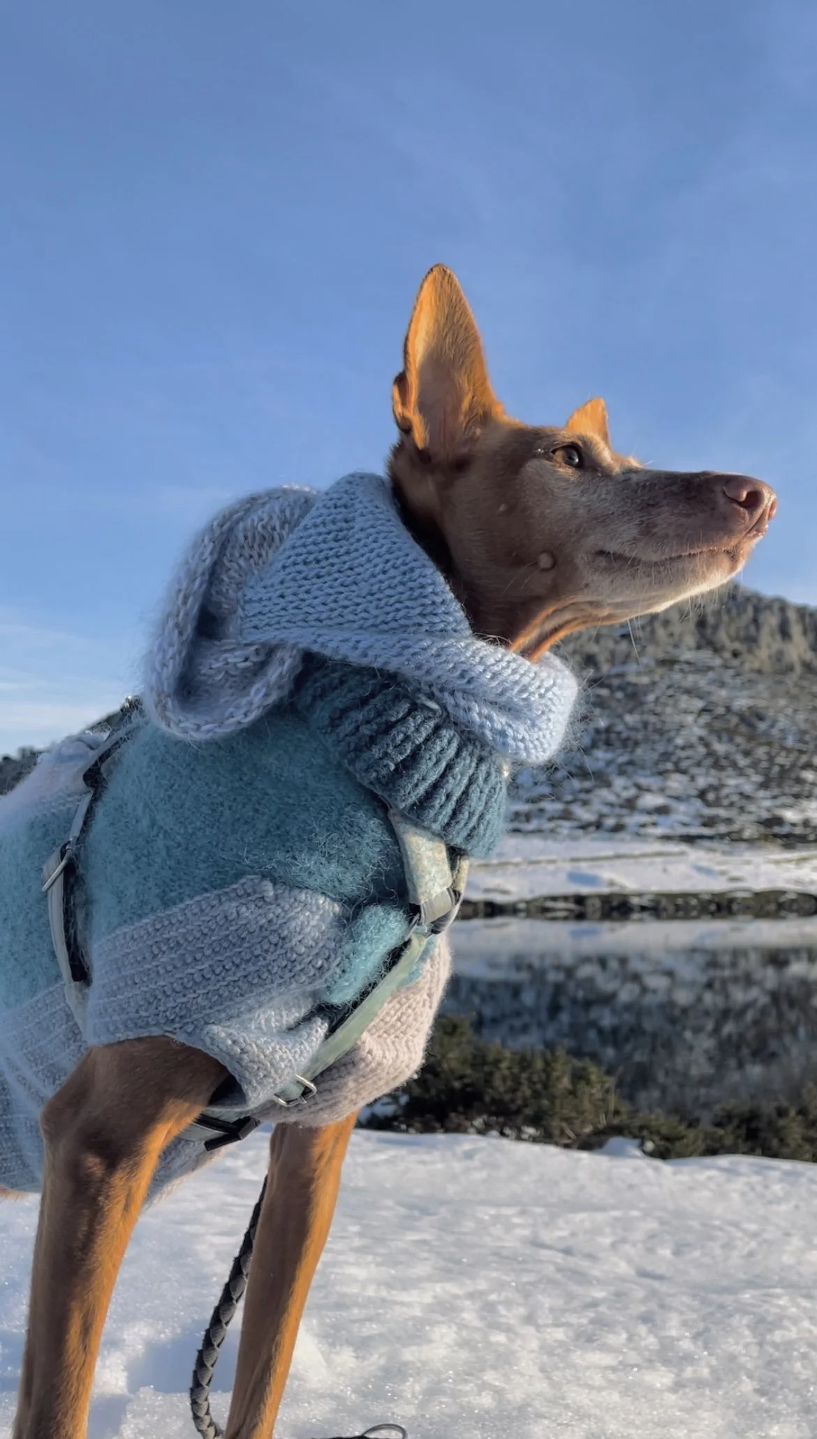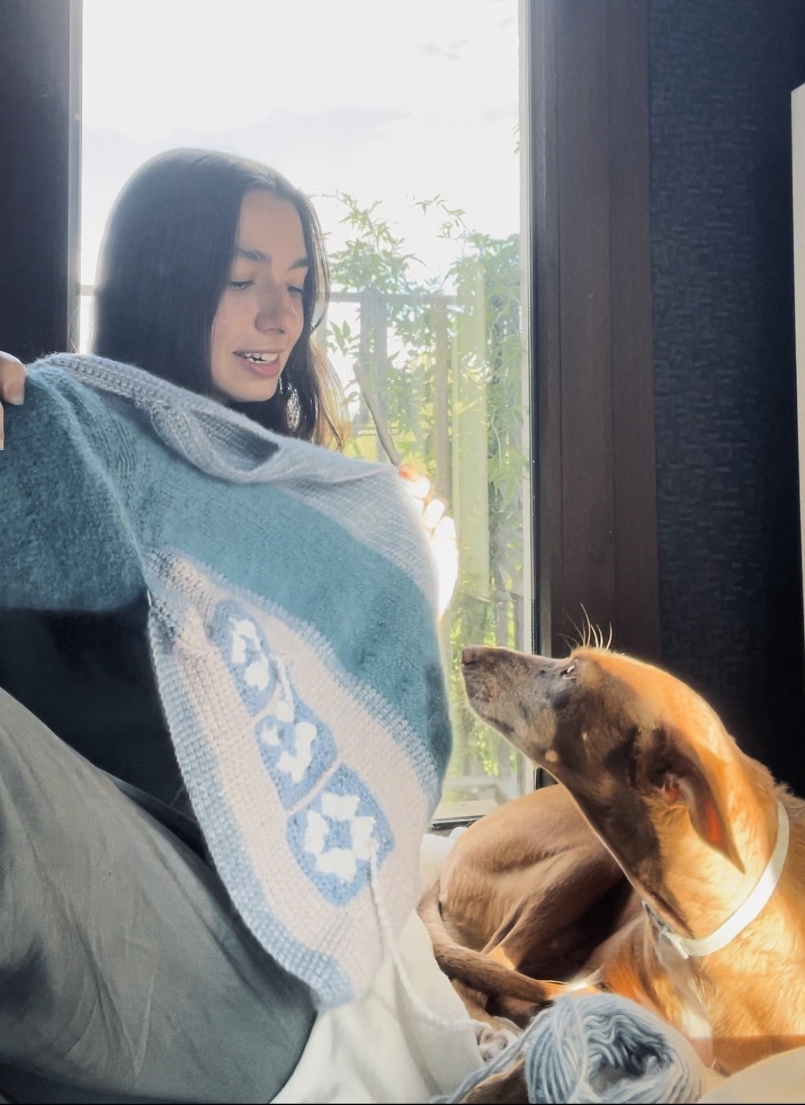 Antes de adoptar a Kiri me puse a buscar un arnés que fuera seguro para ella. Al Equipo de rescate Era y a las personas que consiguieron salvarla les había costado mucho atraparla. Me informé sobre los arneses de tres puntos antiescape. Éstos son los adecuados para perritos como Kirikú porque no pueden salirse de ellos cuando tienen miedo e intentan huir. Aprovechando los conocimientos que adquirí de diseño, patronaje, materiales y confección en la carrera de diseño de moda, decidí hacerle yo misma el arnés. Quería asegurarme de que las costuras fueran muy fuertes. Como nos íbamos a vivir a una aldea en el monte asturiano, también le tejí algunos jerséis. Y desde entonces Kirikú ha ido ampliando su armario con ropa y accesorios. Ella es la modelo y la que hace el control de calidad de todos nuestros productos. Durante más de un año hemos estado probando diferentes materiales y diseños para dar con el mejor.